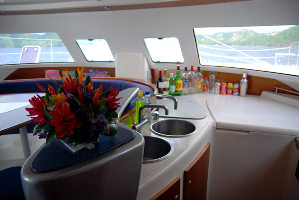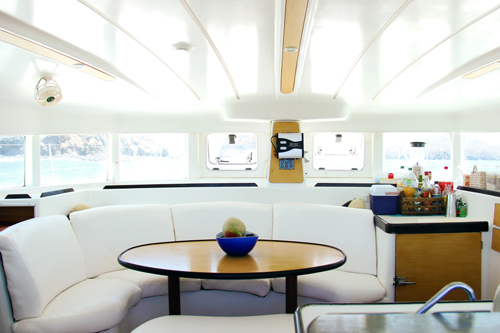 Our catamarans come equipped with 4 bedrooms, 2 to 4 full bathrooms, large air-conditioned salon, kitchen, living room and enough space on deck to spend the whole day watching the scenery, enjoying the breeze and the blue sea, or exploring the coast.